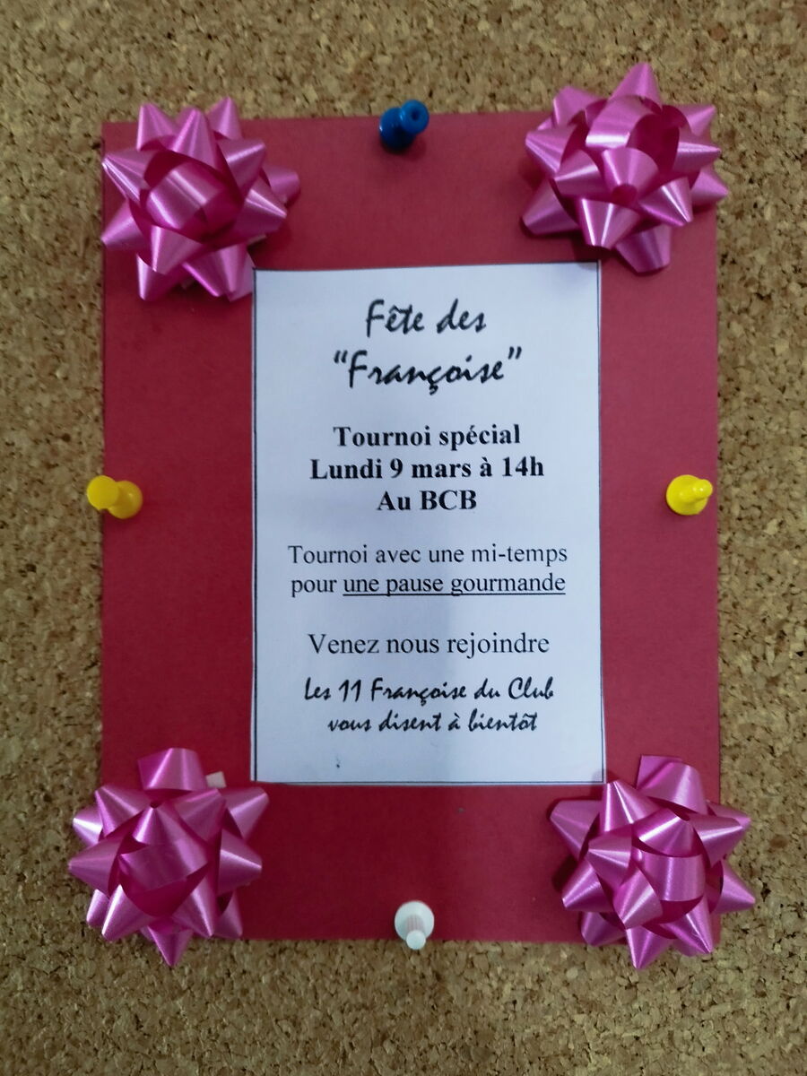Les "Françoise" du BCB vous invitent à un tournoi récréatif le 9 mars 2026